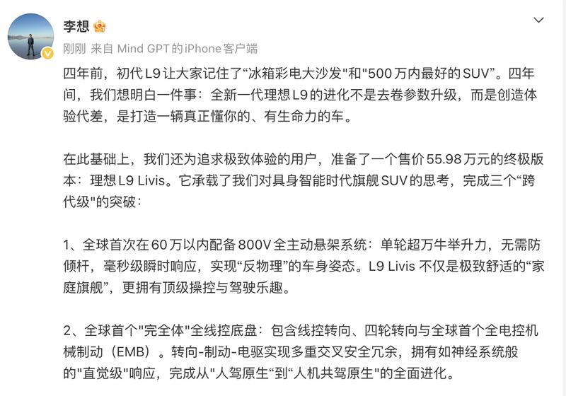 全新一代理想L9官图 Livis版售价55.98万元/二季度内发布 2026/02/06 · 车险金融