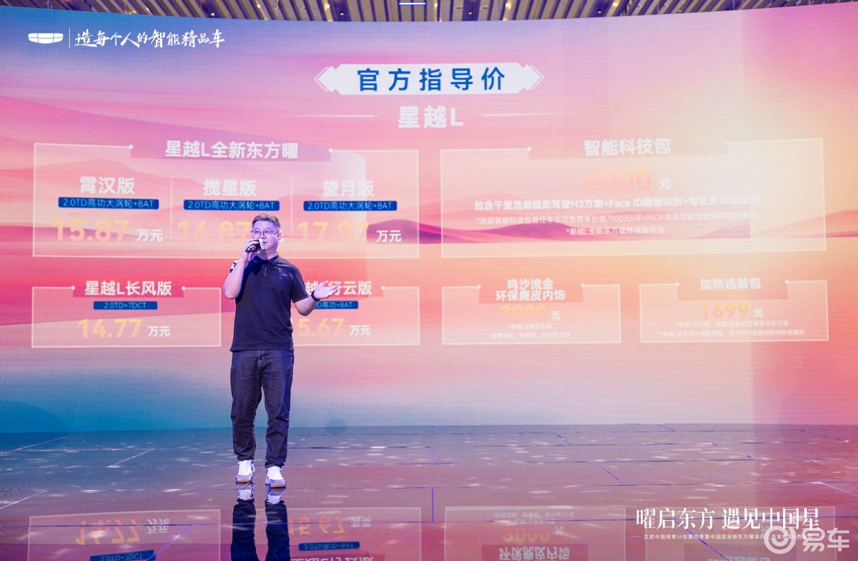 价格方面,星瑞东方曜推出6款车型,限时指导价9.87万-13.87万元;星越L东方曜提供3款车型,限时指导价15.87万-17.97万元,并附多重购车权益。