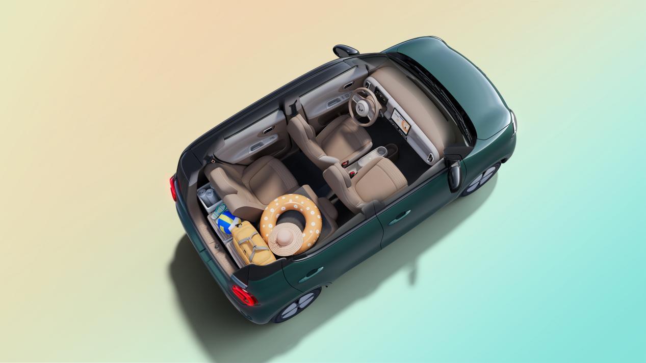 要重点说明一下,第五代宏光MINIEV可是同级唯一四门四座设计,其前后排座间距达到了793mm,后排上方的身体通过空间达到了620mm,下方的腿部通过空间达454mm,这意味着,第五代宏光MINIEV可以做到前后排,四人乘坐的舒适平权,轻松满足全家人的多元出行场景,快乐一车就能装下。