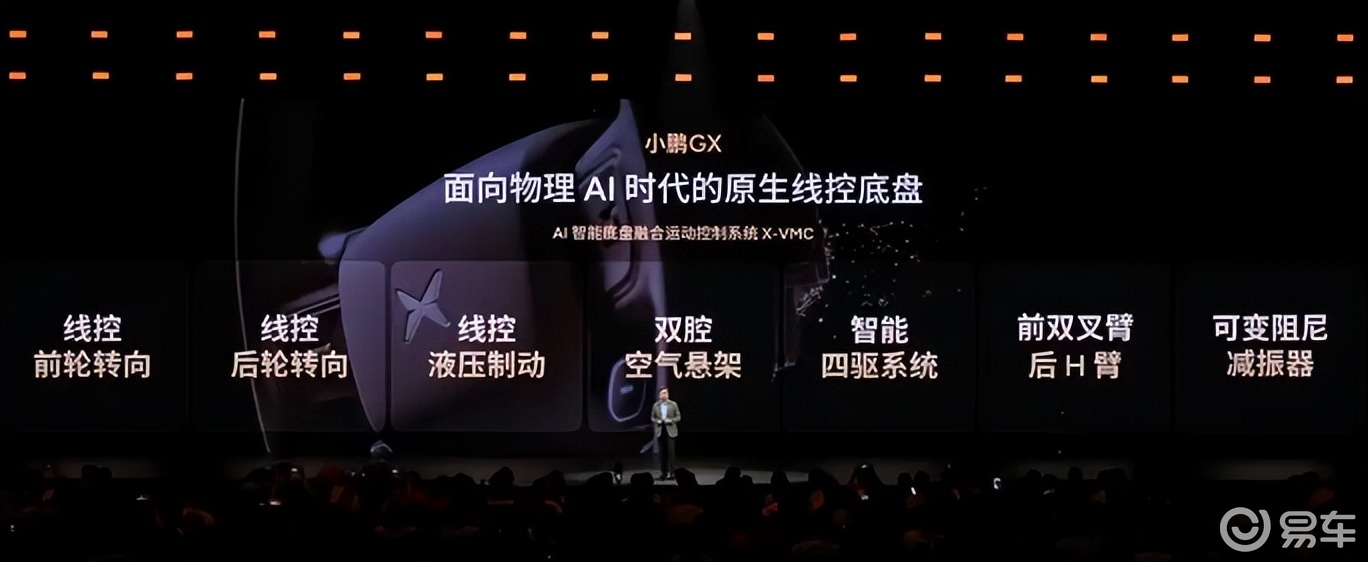 因此小鹏 GX 用了线控底盘、后轮转向、微动泊车、34.4m 制动距离来解决问题。