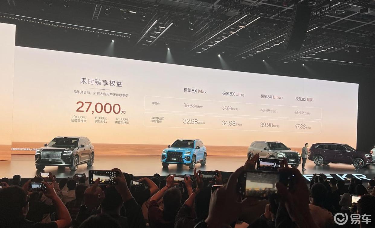 8X分为5人座和6人座两种布局,全车系同样配备16寸中控屏幕、第二排8/13寸影音娱乐屏幕、前排电动调节座椅,以及一系列第二排座椅功能(加热与通风、按摩、电动调节、头枕扬声器、电动折叠、电动滑轨、一键复位)等。