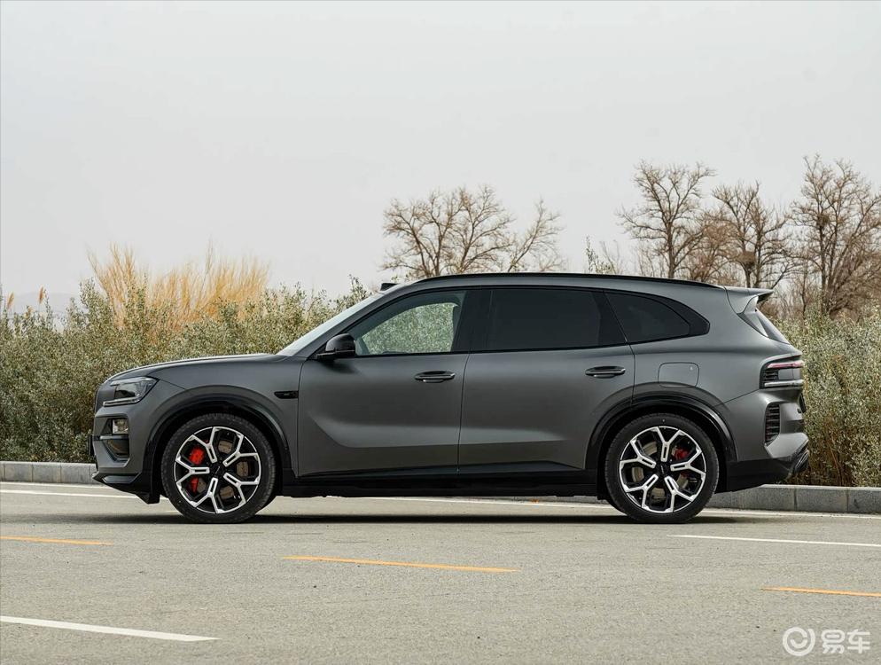 外观上,车子的前脸略微与极氪9X相似,配有直瀑式进气格栅、;两侧导风槽以及同样的C形日行灯。不过,车身线条较为圆润,尾灯则不是9X那种两条并列的设计,而是贯穿式尾灯配位于下方左右两侧的灯条。整体风格更运动化一些。