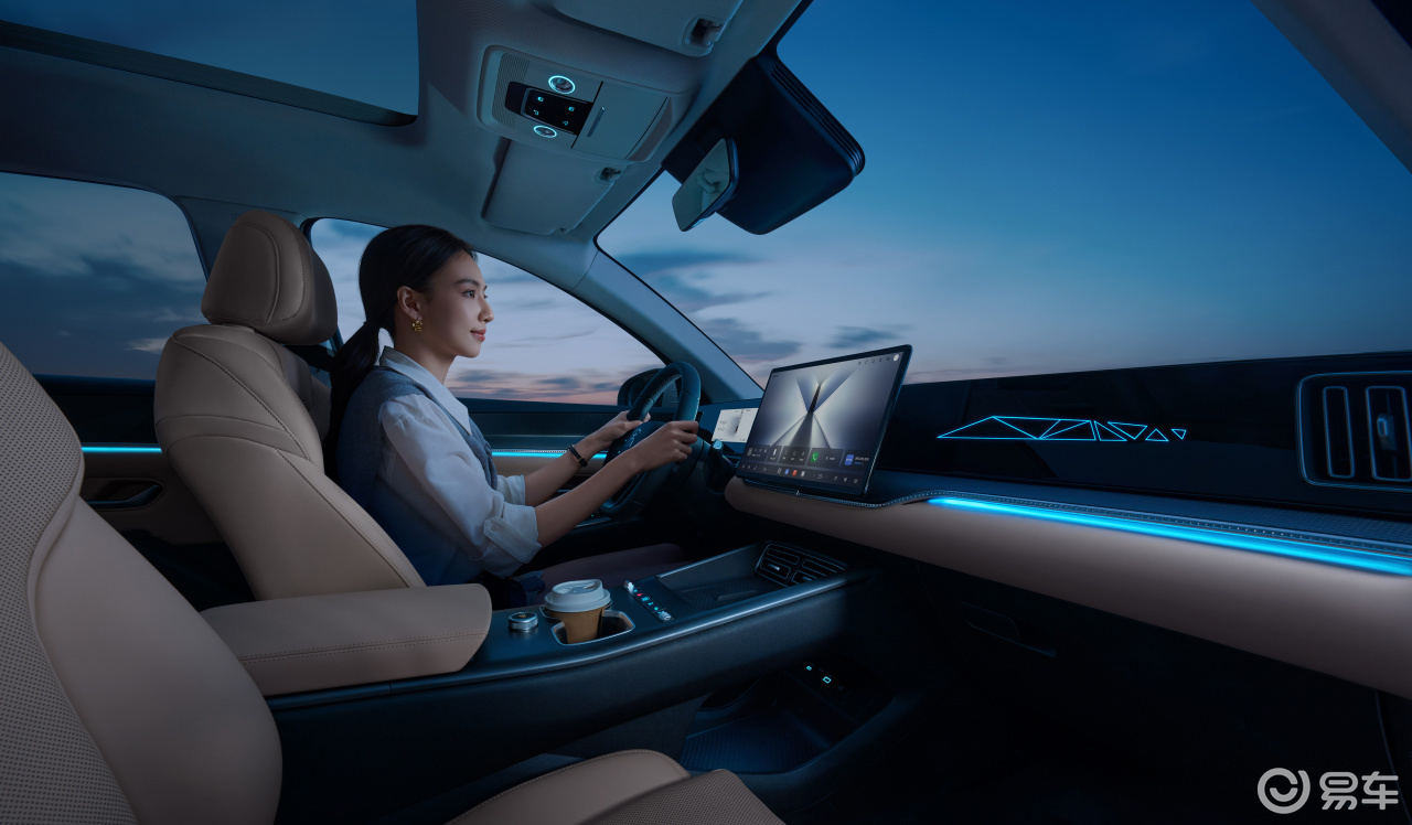 座舱内的智能化体验同样丰富。新增的一体式智能冷暖冰箱、前排座椅通风加热、感触式广角全景天窗、31色环抱式情景氛围灯,结合15.6寸中控Pad与沉浸式音乐厅级音响,共同营造出高品质的舒适氛围。整车支持OTA远程升级,确保这些智能舒适体验常用常新。