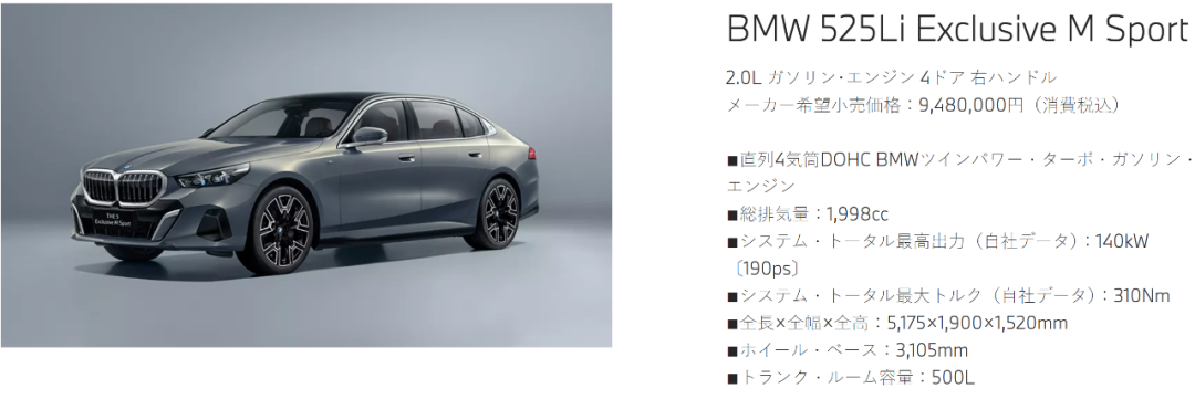 后来我还注意到,宝马于2025年5月份在日本市场提供加长版的5系和i5,其车身尺寸和轴距也和中国市场的完全一致,丝毫不差。应该是国内生产的,但华晨宝马官方并没有透露过这方面的任何消息。
